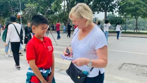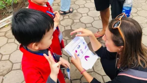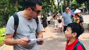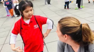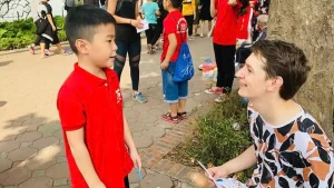 Trong hoạt động trải nghiệm “Learning English at Hoan Kiem Lake”, các học viên nhỏ tuổi của TES được vừa học – vừa chơi – vừa khám phá. Dưới sự hướng dẫn của giáo viên bản ngữ và giáo viên Việt Nam, các con được học từ vựng về danh lam thắng cảnh, luyện phản xạ hội thoại theo tình huống, tham gia các mini game tương tác, hoạt động hỏi – đáp, phỏng vấn du khách, và cả thuyết trình ngắn bằng tiếng Anh về những điều mình khám phá.