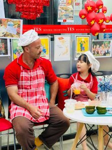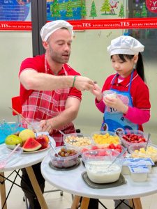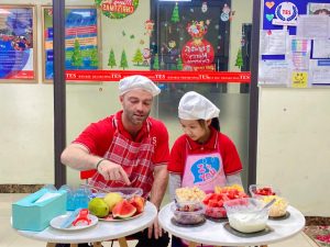 Chính vì vậy, thay vì chỉ học từ vựng qua sách vở, học sinh TES được học tiếng Anh bằng tất cả các giác quan – nhìn, nghe, chạm, nếm và nói. Trong buổi học “Make Orange Juice”, các con không chỉ là học sinh mà còn trở thành “đầu bếp nhí”, tự tay chuẩn bị món nước cam thơm ngon và được thực hành giao tiếp tiếng Anh một cách tự nhiên, vui vẻ.