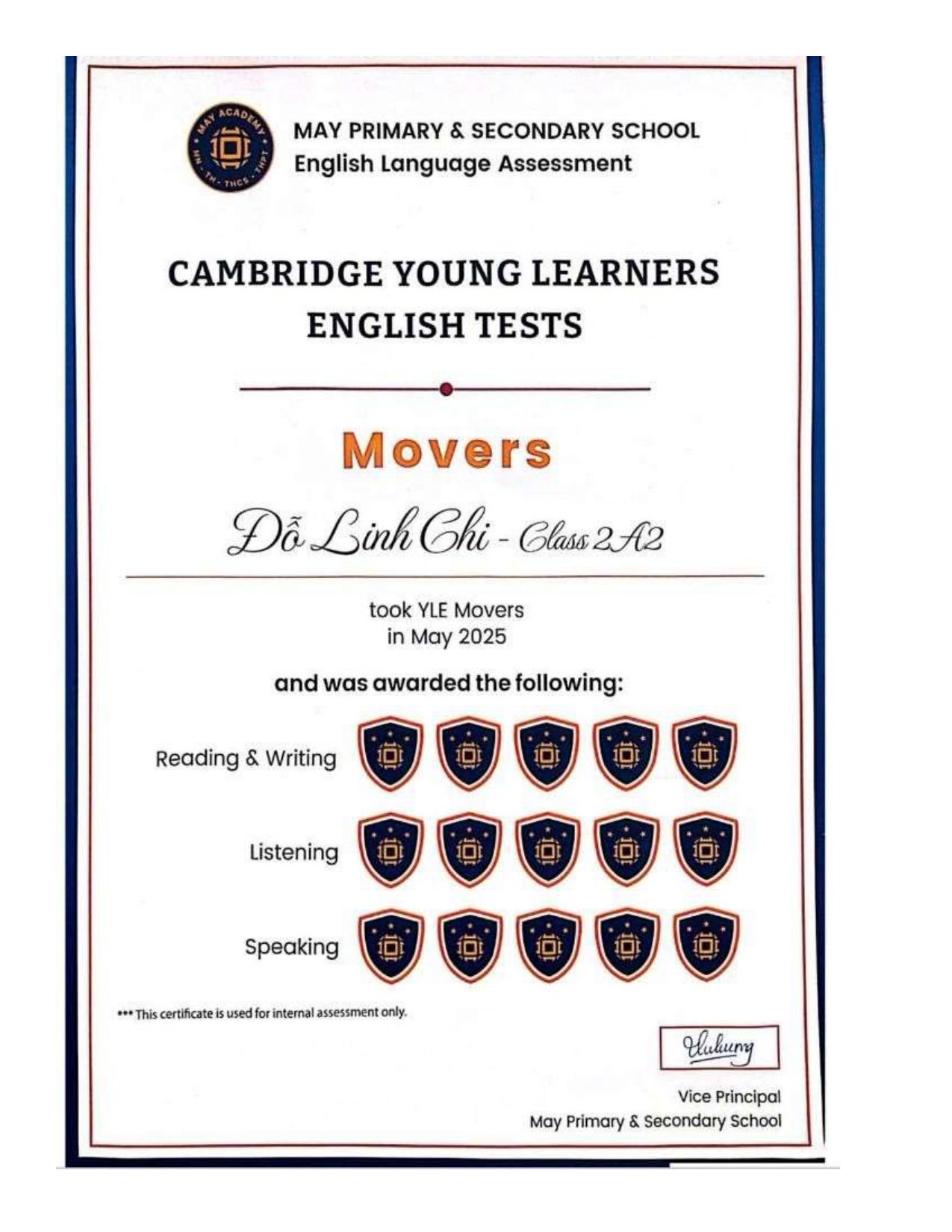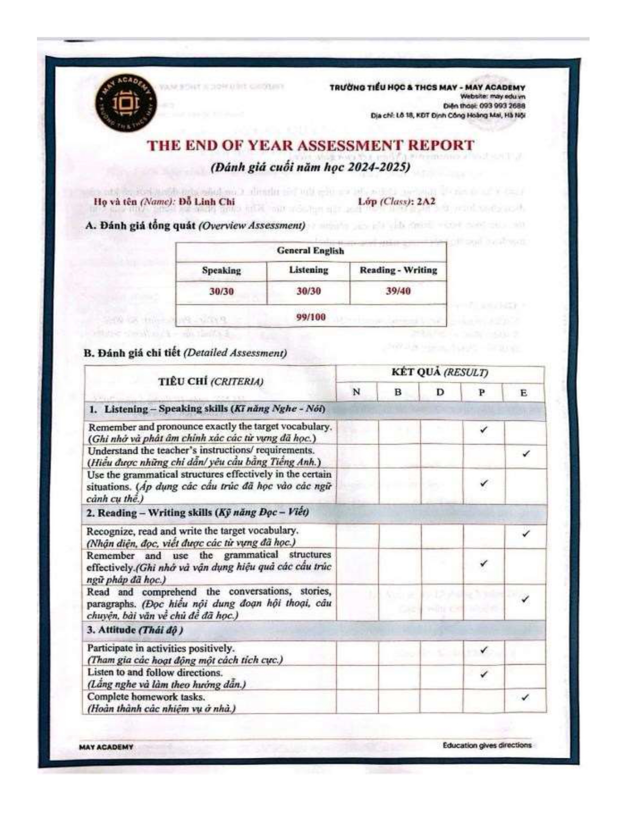 Con bắt đầu học ở TES từ khi mới 5 tuổi, và giờ con đã là học sinh lớp 3 rồi! Sau nhiều năm học tập và gắn bó, con cảm thấy mình đã tiến bộ hơn rất nhiều – không chỉ trong tiếng Anh mà còn cả sự tự tin và niềm vui mỗi khi đến lớp.
