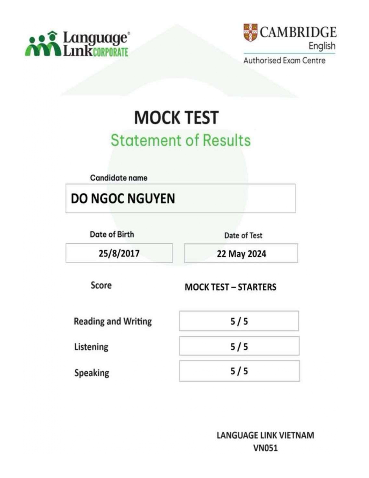 Con đặc biệt yêu quý thầy Matt và thầy Eli, vì các thầy luôn vui tính, gần gũi và tạo không khí học tập hào hứng. Dù là trong giờ học hay khi kiểm tra, các thầy luôn biết cách khích lệ, động viên và giúp con cảm thấy việc học tiếng Anh thật vui, thật nhẹ nhàng.