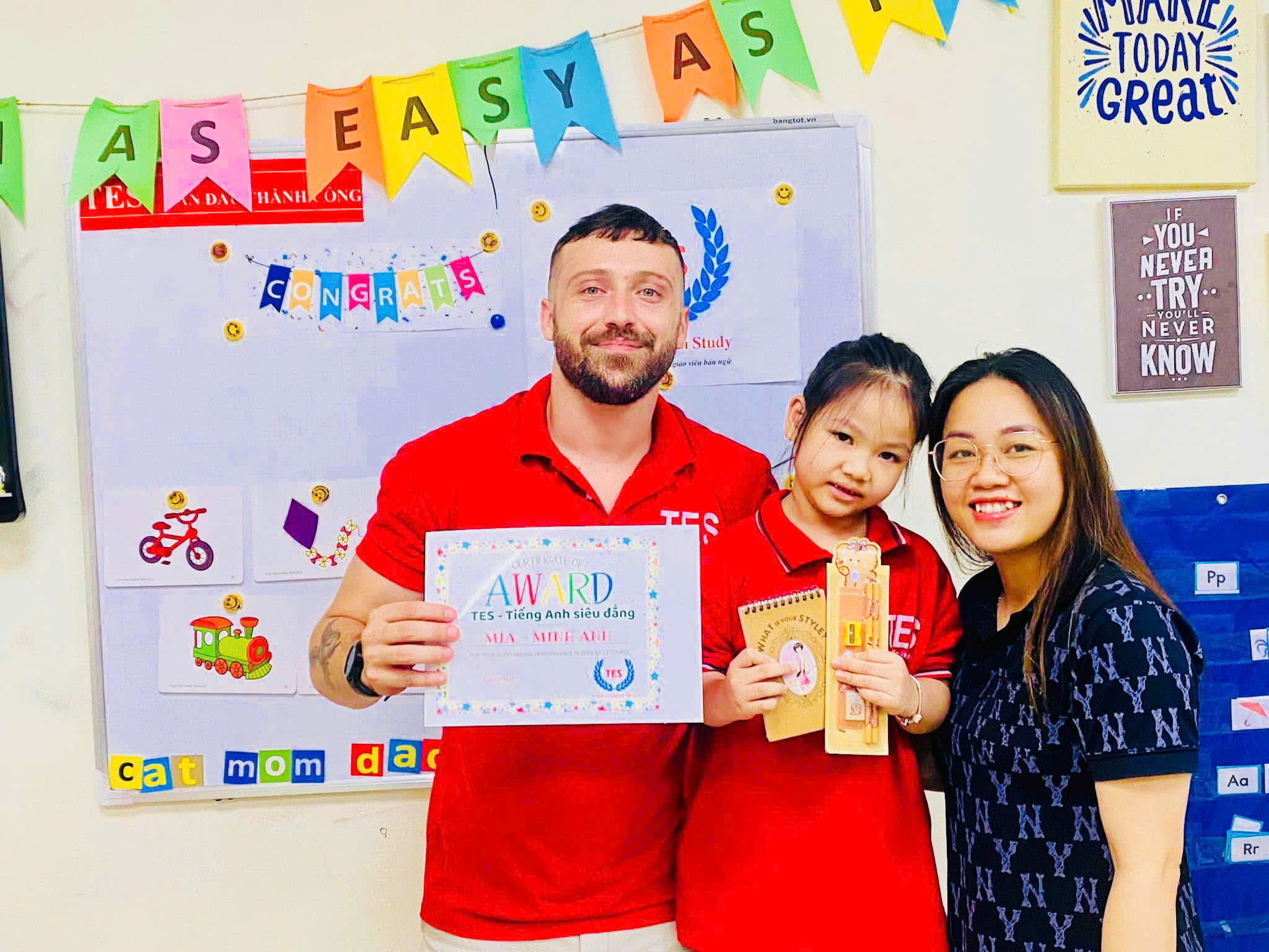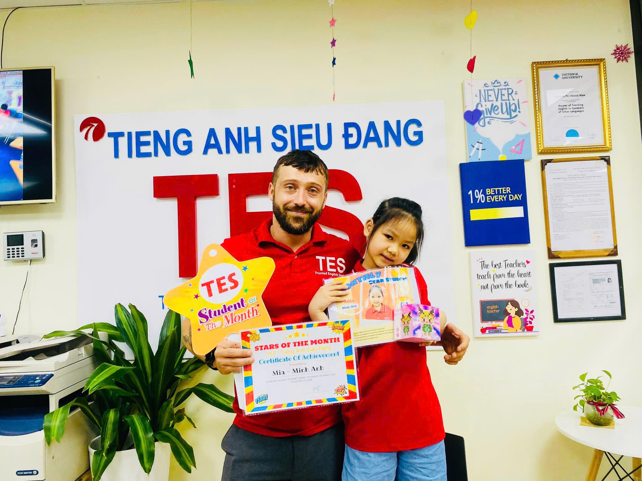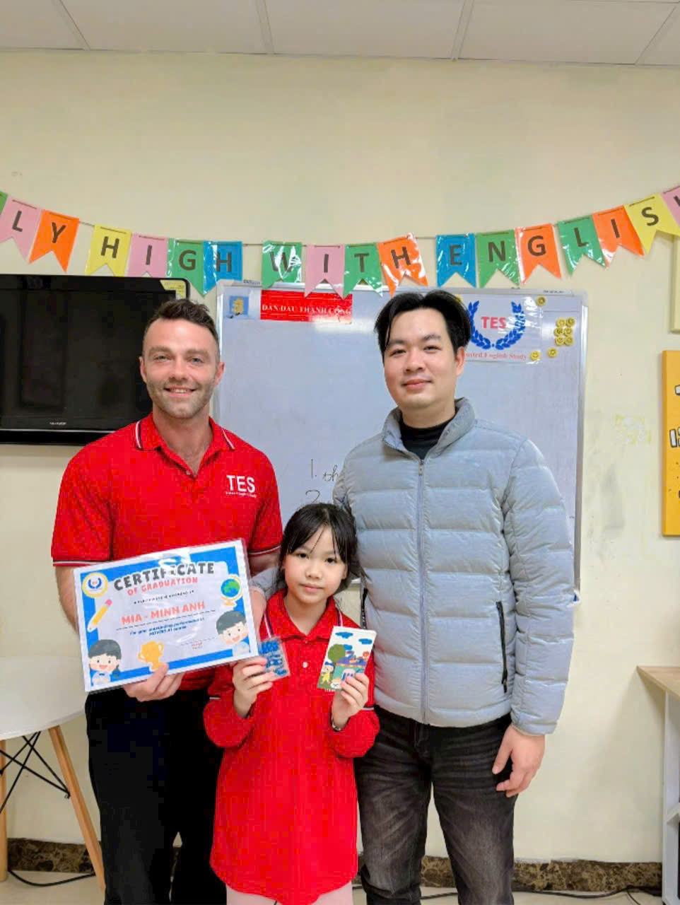Điều khiến con ấn tượng nhất là môi trường học tại TES luôn tràn đầy năng lượng tích cực. Mỗi ngày đến lớp, con không chỉ được học kiến thức mới mà còn được rèn luyện kỹ năng giao tiếp, phản xạ tiếng Anh và khả năng tự tin thể hiện bản thân. Bên cạnh đó, TES luôn tổ chức những hoạt động học tập ngoài lớp, những dự án nhóm thú vị, giúp con có thêm cơ hội khám phá, sáng tạo và vận dụng tiếng Anh vào thực tế.