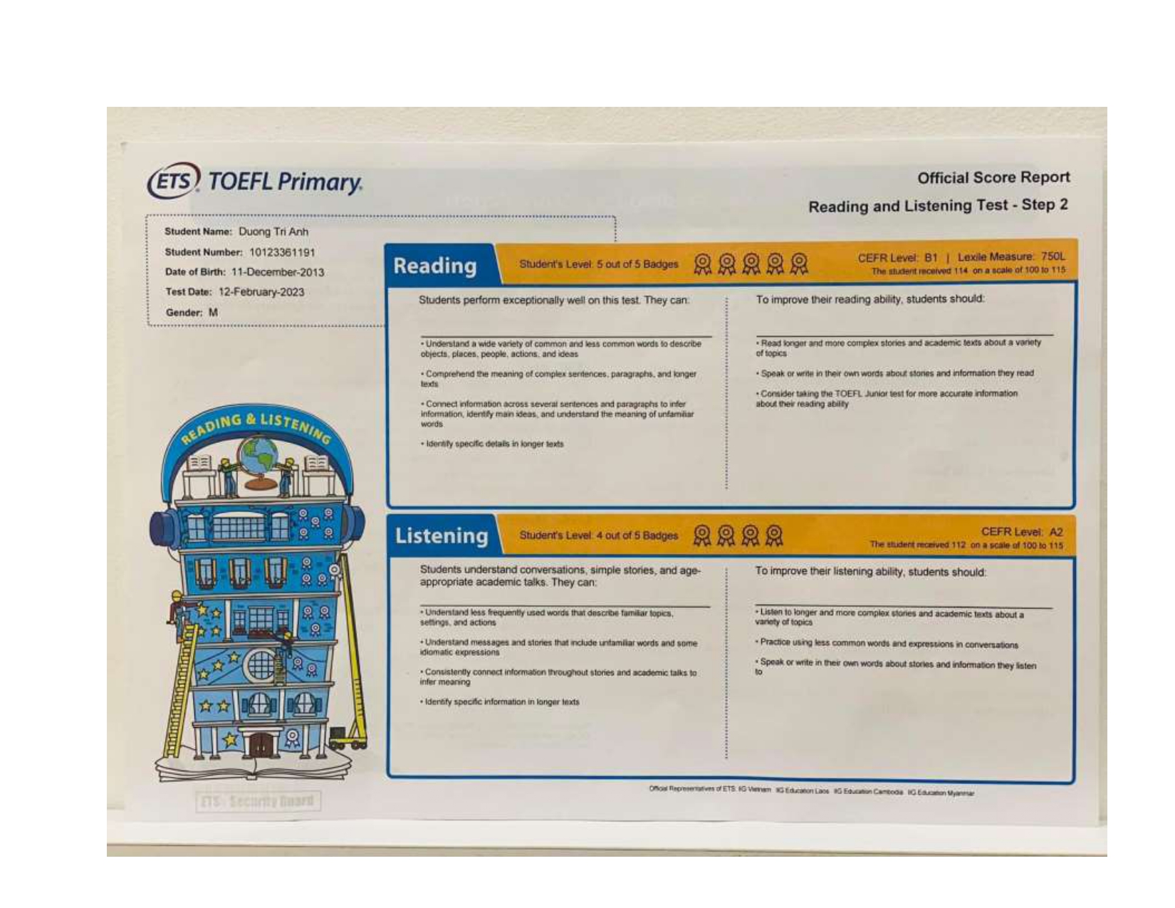 Ở trường, môn học mà con yêu thích và tự tin nhất chính là tiếng Anh. Con đã được làm quen với tiếng Anh từ khi còn rất nhỏ – chỉ mới 5 tuổi, trong buổi học đầu tiên cùng cô Ray và cô Nicole. Nhờ sự tận tâm và tình yêu thương của các cô, con dần yêu thích tiếng Anh và nuôi dưỡng niềm đam mê ấy suốt nhiều năm qua.