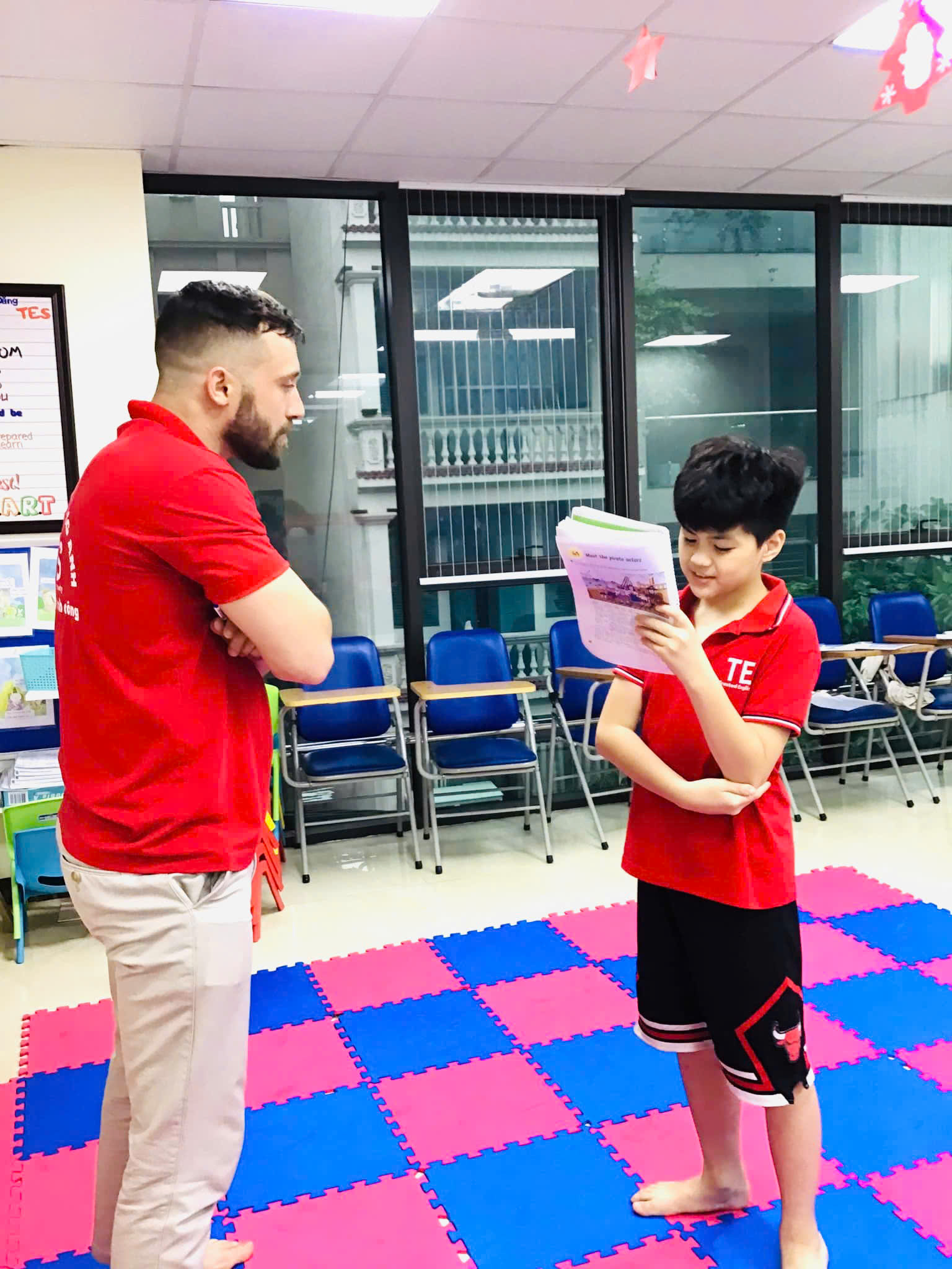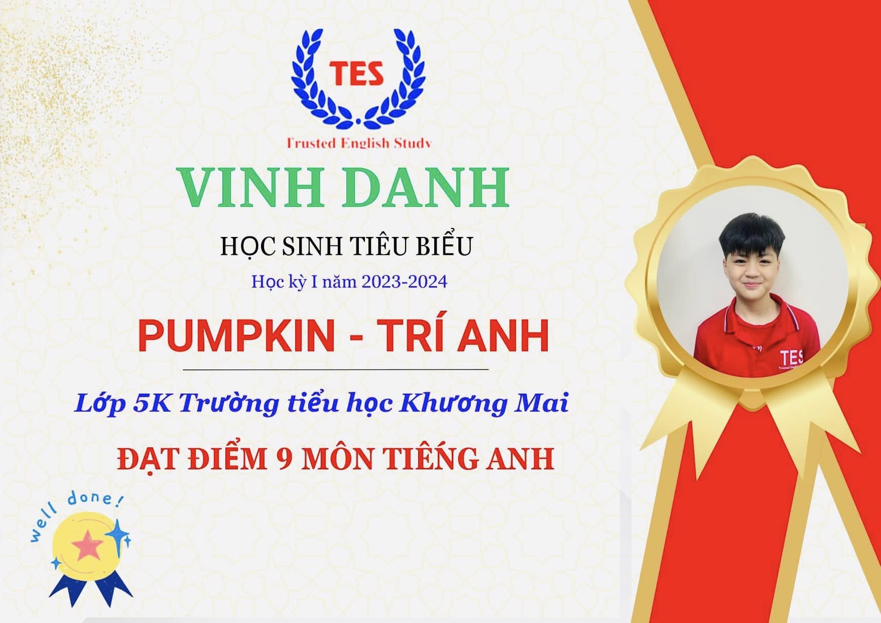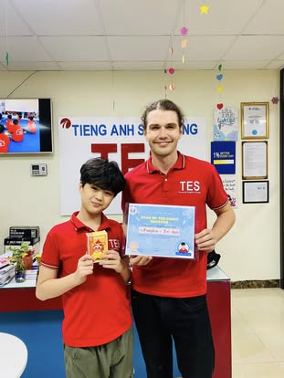Không chỉ học trong lớp, con còn được các thầy cô bản ngữ tại TES tận tình hướng dẫn, sửa từng lỗi nhỏ trong phát âm, ngữ pháp và cách diễn đạt. Chính sự chỉ dẫn cẩn thận và khích lệ ấy đã giúp con tự tin đứng trước đám đông, mạnh dạn thể hiện quan điểm và cảm xúc bằng tiếng Anh một cách rõ ràng, trôi chảy.