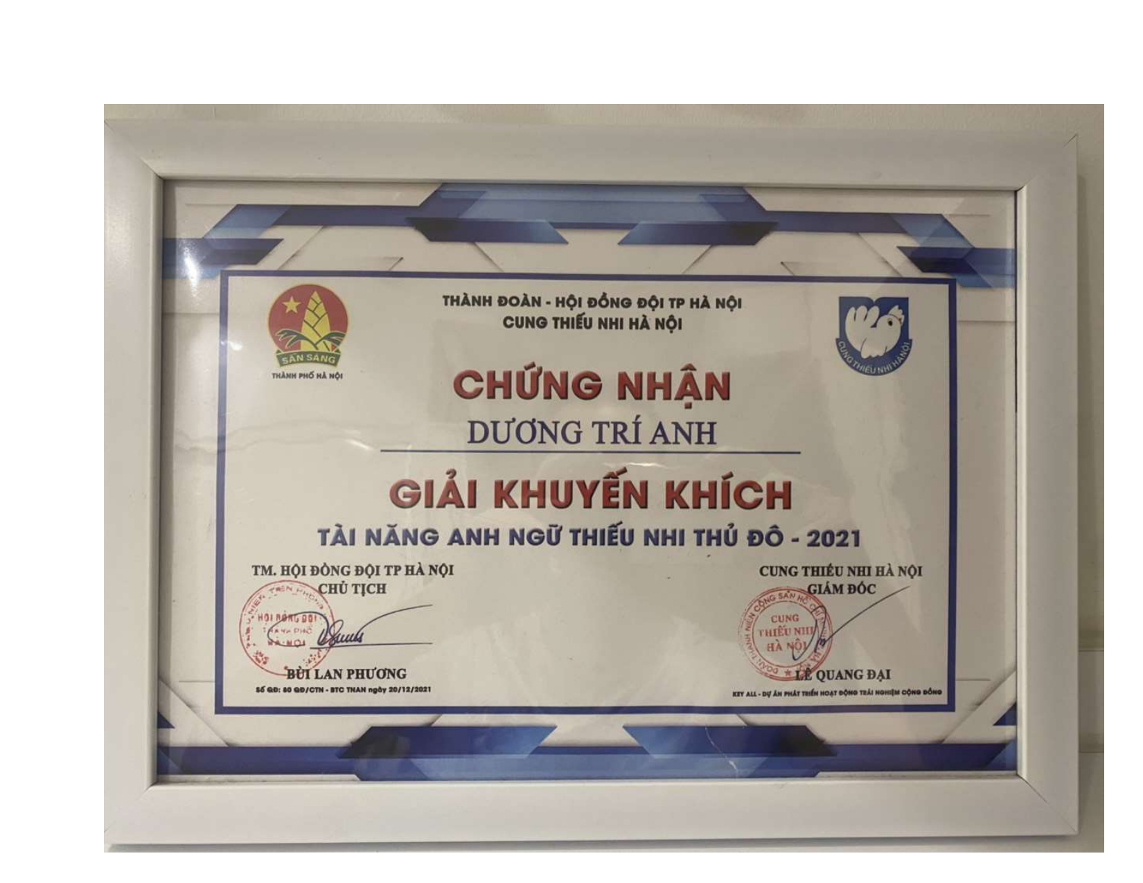 “Con xin gửi lời cảm ơn sâu sắc tới bố mẹ – những người luôn đồng hành, ủng hộ và tạo điều kiện cho con học tập. Con cũng rất biết ơn cô Nicole, cô Anna, cô Becky, cô Tamryn, thầy Matt và thầy Enoch đã giúp con đạt được những thành tựu đáng nhớ trong hành trình chinh phục tiếng Anh. Con sẽ tiếp tục cố gắng để đạt được nhiều thành công hơn nữa trong tương lai.”
