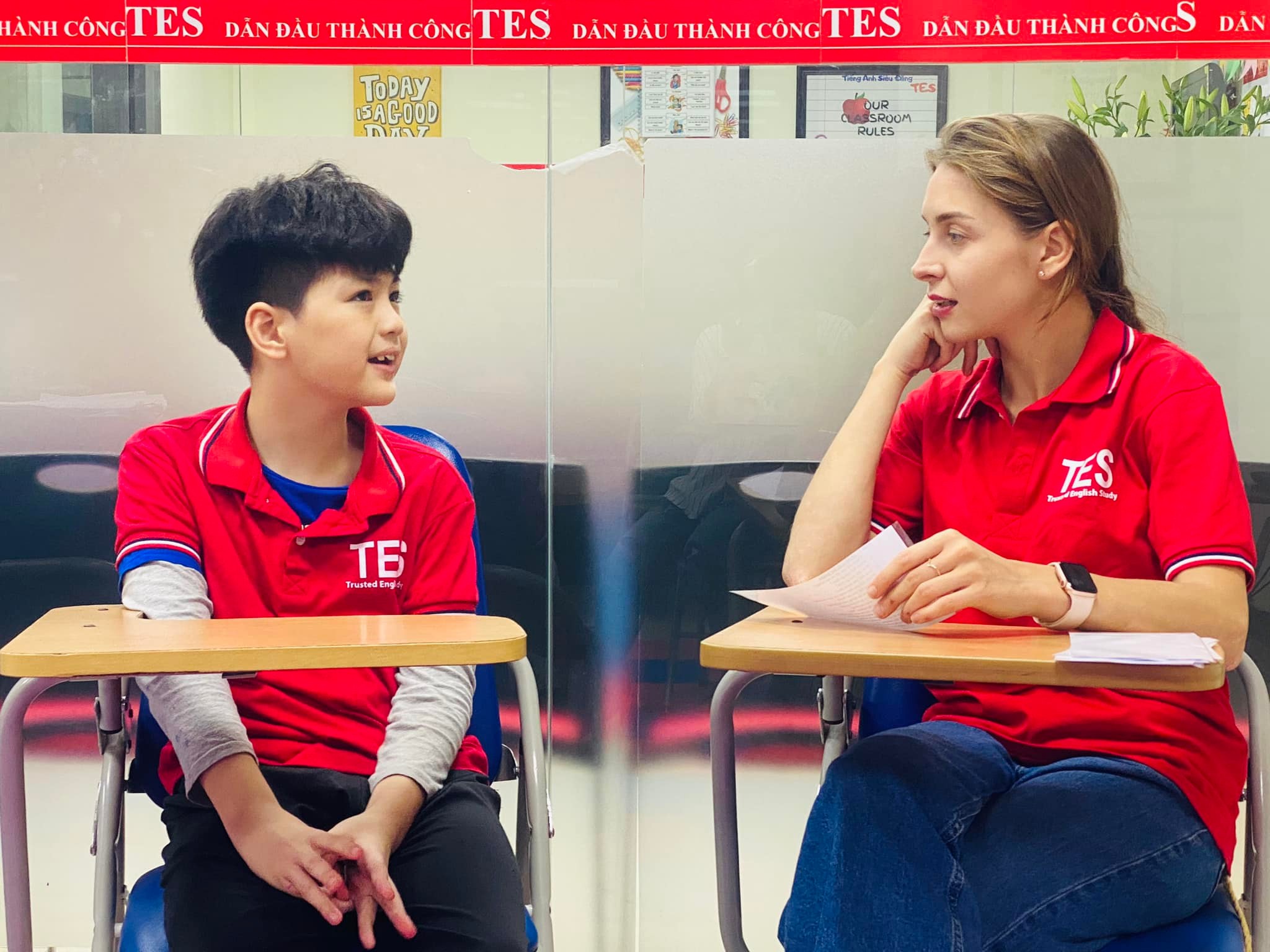 Giờ đây, tiếng Anh không chỉ là một môn học, mà đã trở thành một phần quan trọng trong cuộc sống của con. TES không chỉ giúp con giỏi hơn trong kỹ năng ngôn ngữ mà còn giúp con trưởng thành hơn, tự tin hơn và biết cách thể hiện bản thân trước mọi người.