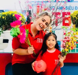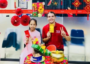 Chương trình đặc biệt “Tết Fun Class” là món quà TES dành tặng cho các bạn học sinh mỗi dịp năm mới – nơi các con được học tiếng Anh qua trải nghiệm văn hóa Tết Việt. Dưới sự hướng dẫn của giáo viên bản ngữ và giáo viên Việt Nam, các bạn nhỏ được khám phá những phong tục quen thuộc như gói bánh chưng, chúc Tết, lì xì đầu năm, trang trí nhà cửa, sum họp gia đình – tất cả đều được thể hiện bằng tiếng Anh một cách sinh động và gần gũi.